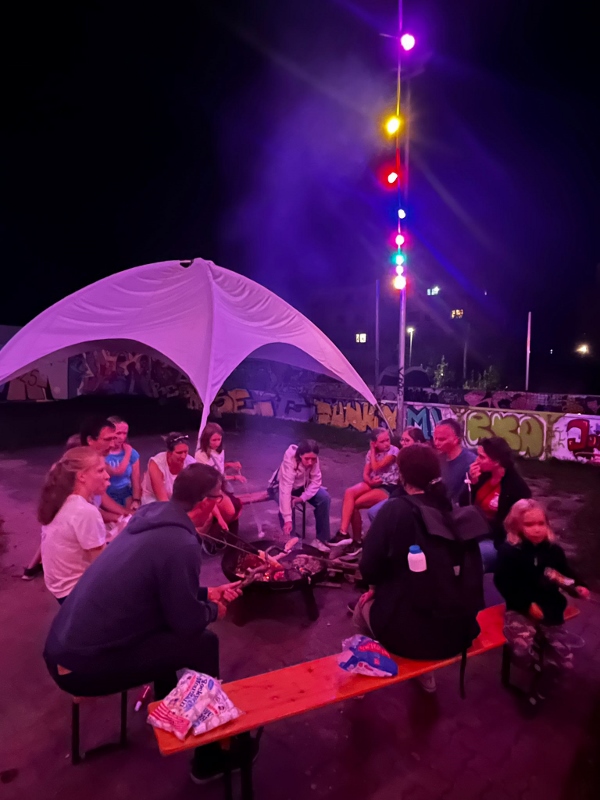 Währenddessen nutzten die Erwachsenen die Zeit, um neue Kontakte zu knüpfen, die Zelte für die Nacht vorzubereiten und ein gemütliches Lagerfeuer zu entfachen. Dort fand der Abend bei Stockbrot und S’mores einen leckeren und stimmungsvollen Ausklang.